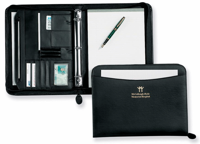 Features : Gloveskin vinyl covers that are completely hand stitched and foam-padded with turned edges. Gusseted organizer pocket. External pocket. Full zipper closure. Removable 1 1/4" ring metal.